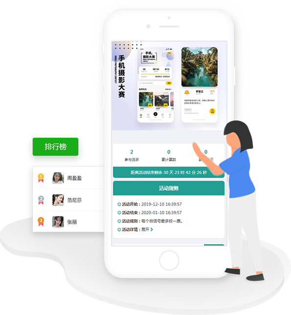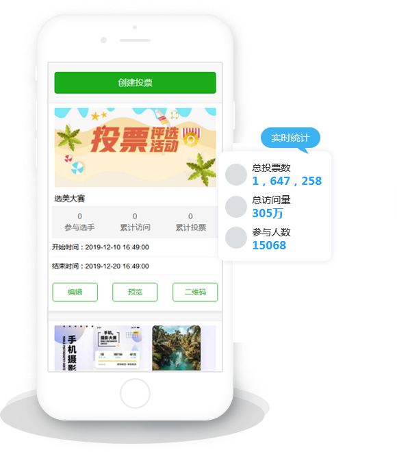 專(zhuān)業(yè)第三方微信投票評(píng)選活動(dòng)制作平臺(tái),3分鐘即可制作一場(chǎng)活動(dòng),已穩(wěn)定運(yùn)行853天,創(chuàng)建活動(dòng)超200萬(wàn)場(chǎng),無(wú)任何隱性消費(fèi)。